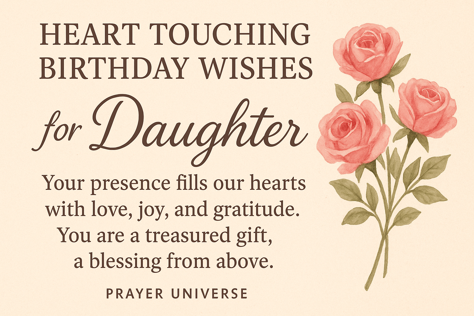 May your daughter always feel cherished, guided by God’s hand, and surrounded by love, peace, and joy. May every year bring new experiences, personal growth, spiritual blessings, and a lifetime of happiness. Above all, may she know that her presence in your life is a constant source of gratitude and wonder, and that the love you hold for her is eternal and unwavering.